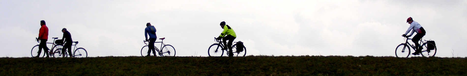 Faster again, typically 90–120 km at 22–25 km/h (55–75 miles at 13–16 mph), with a café stop. These are for riders who enjoy (or wish to discover) how a disciplined group enhances riding pleasure and speed. We aim to keep all who start the ride in the group, so please be sure the speed and distance are right for you – if in doubt, ask! Sometimes we take a train back to town, but not usually on the way out. Bring a lightweight road bike – with mudguards when roads are wet please. | |
